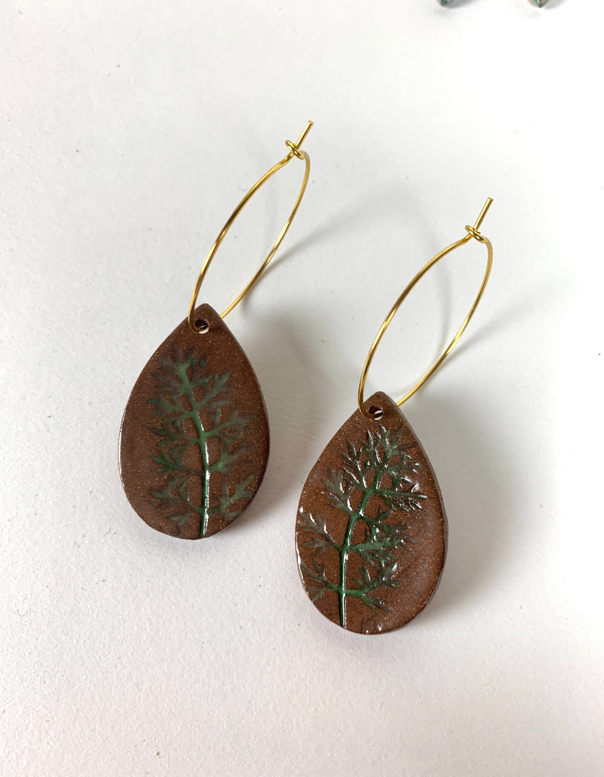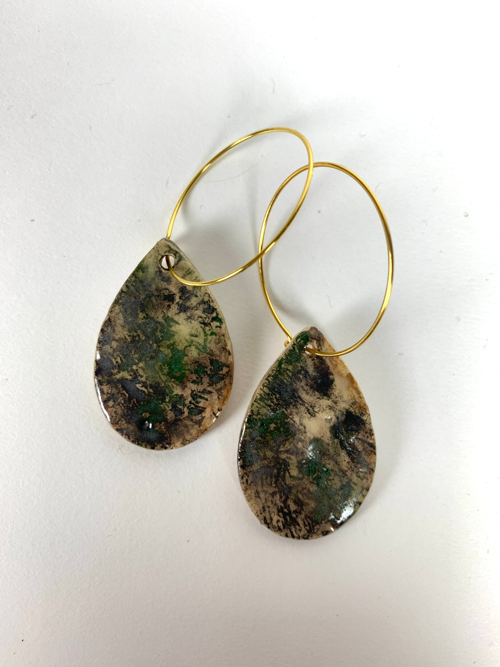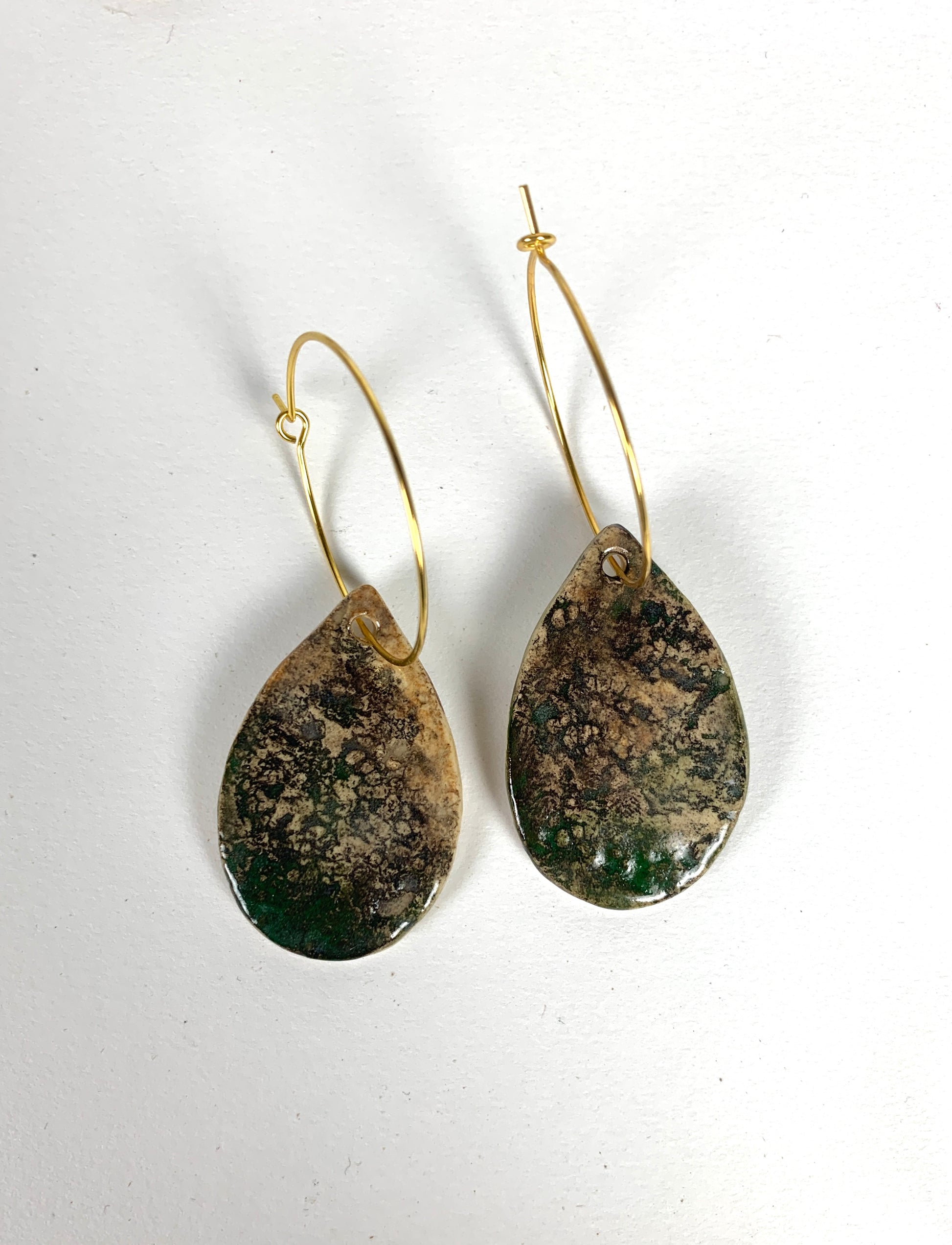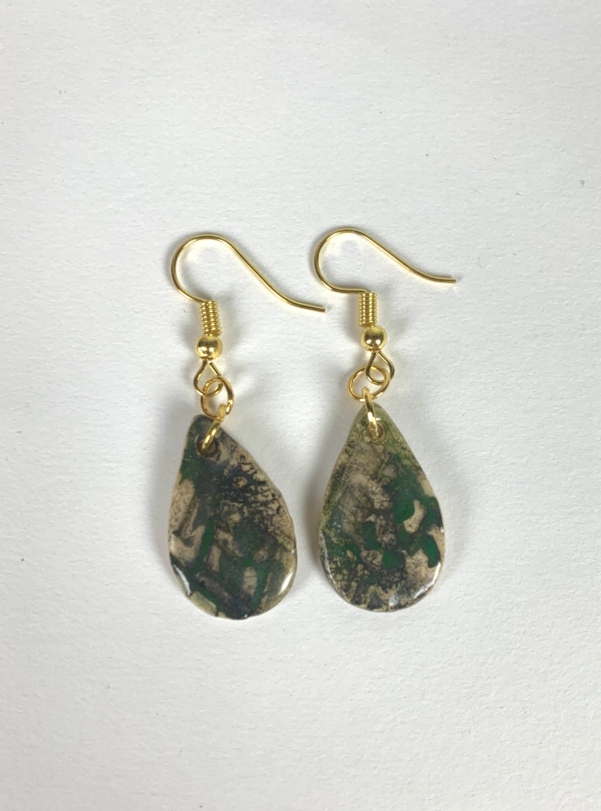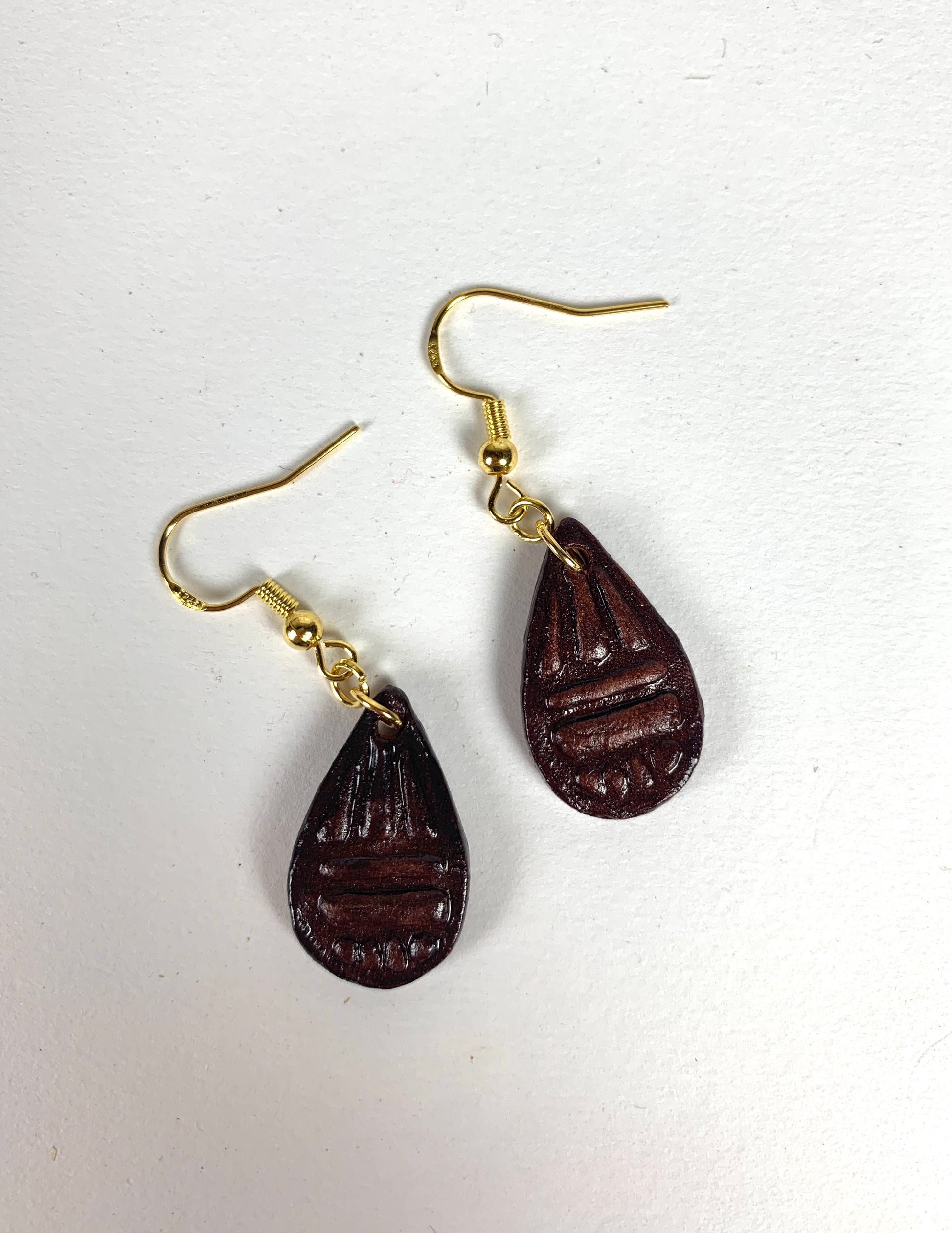 Handmade clay earrings with hypoallergenic sterling silver or gold-plated sterling silver hooks.